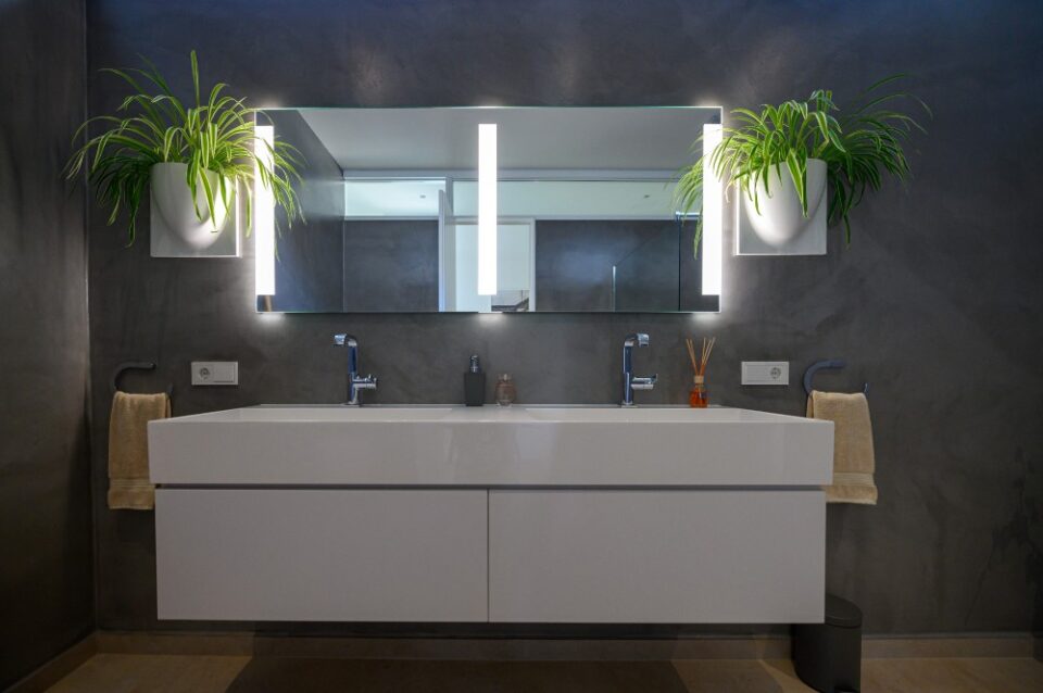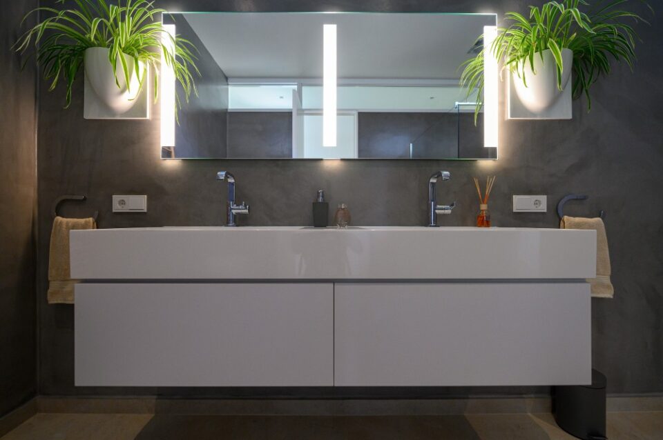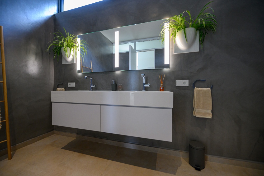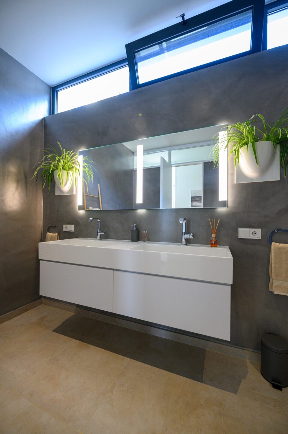 Λιτές γραμμές με στυλ, με αποθηκευτικούς χώρους και εργονομικός σχεδιασμός με διπλούς νιπτήρες για ζευγάρια ή οικογένειες που θέλουν να μειώσουν τον χρόνο τους στην πρωινή ρουτίνα!