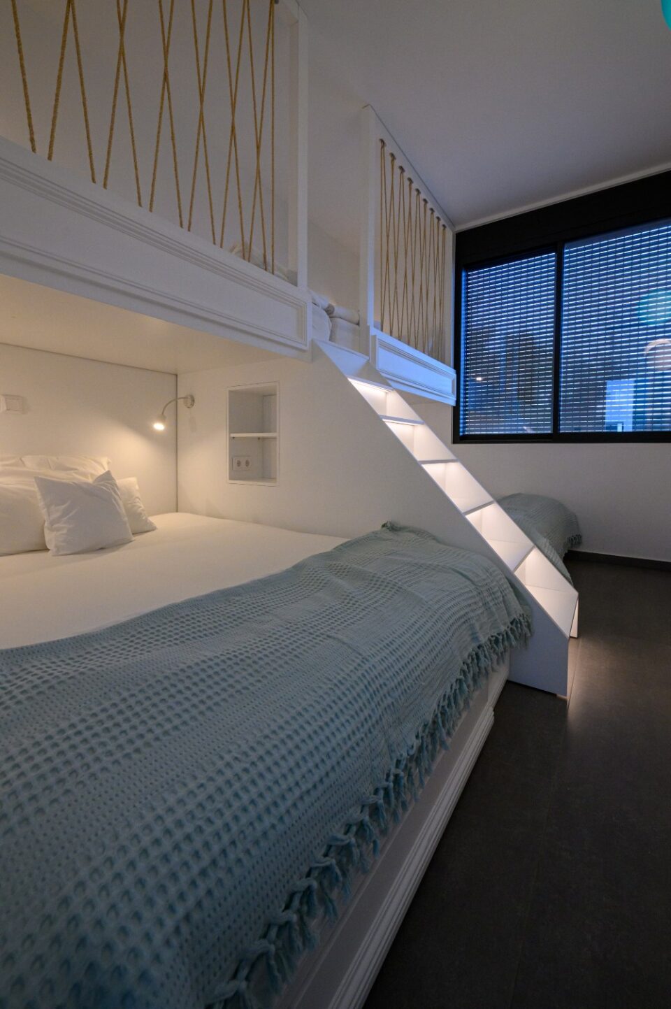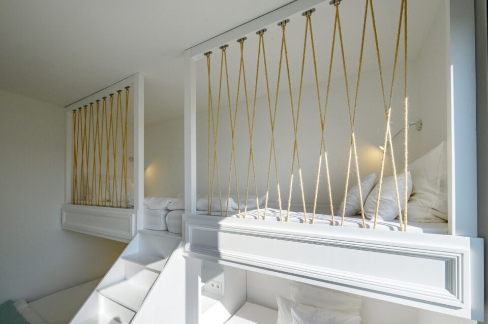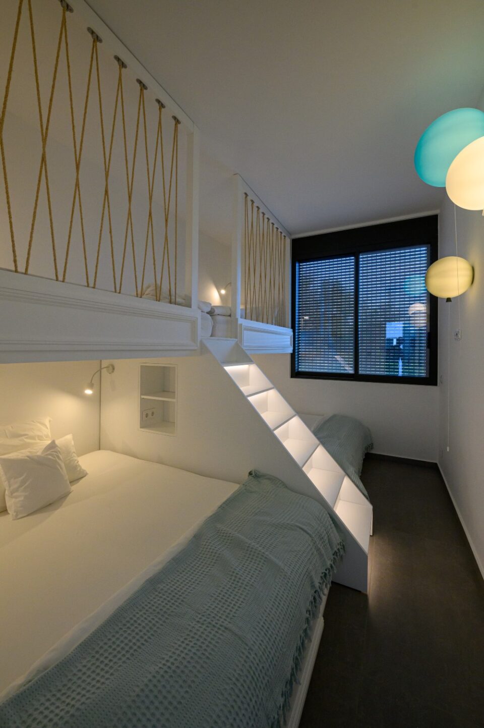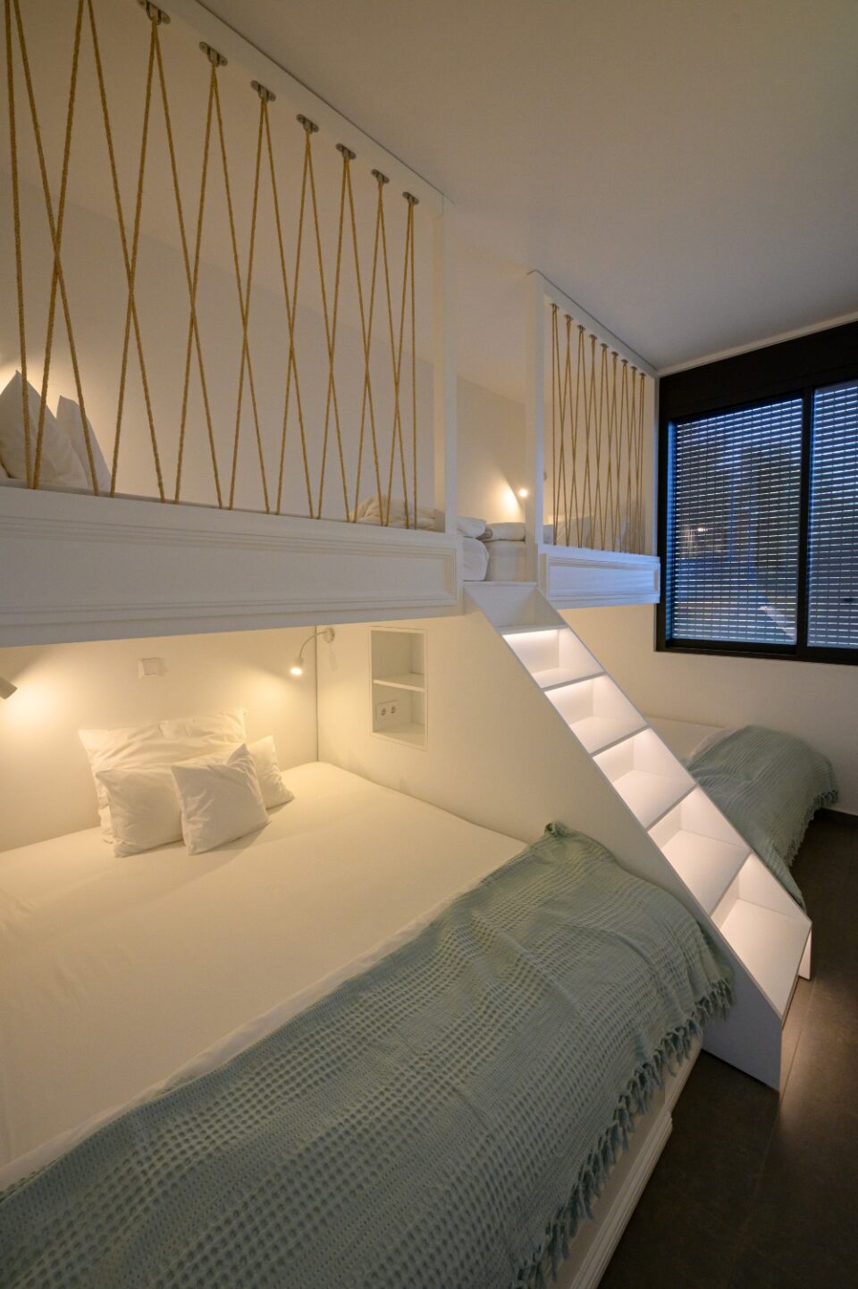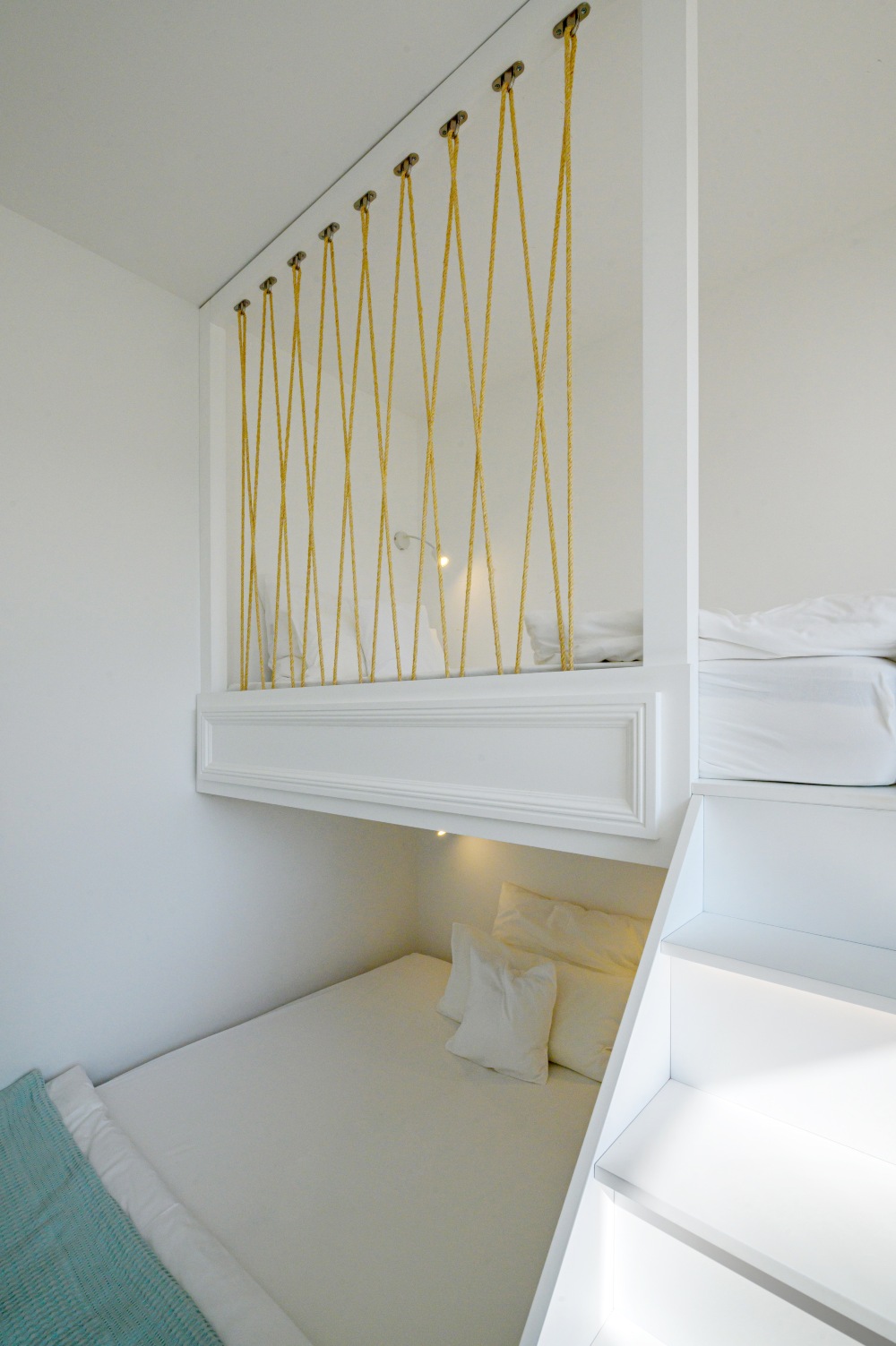 As for the established "sleep over" parties of our youngest clients, we made sure that the lower part of their beds opened telescopically, thus revealing two more beds for more space!!!