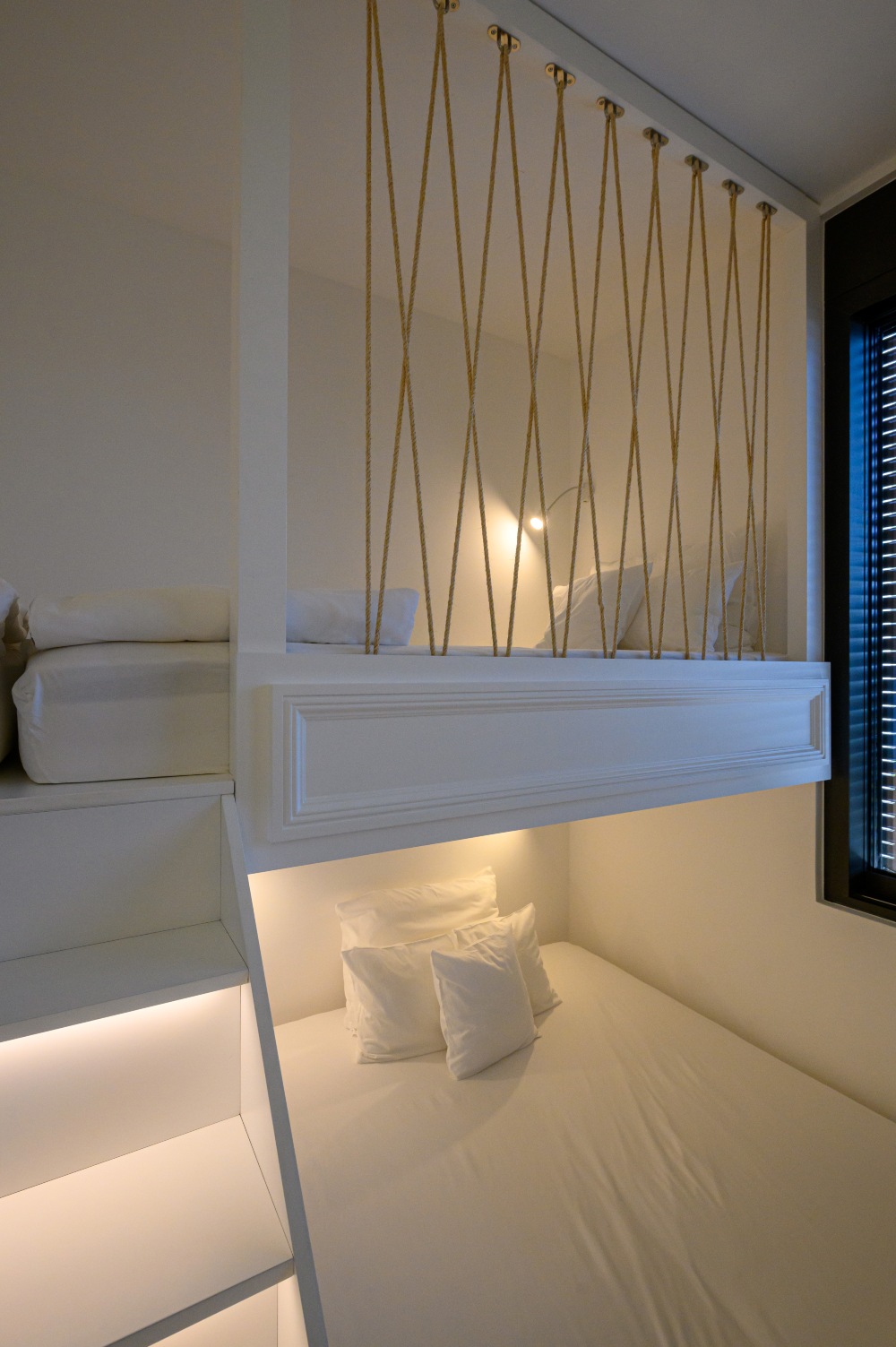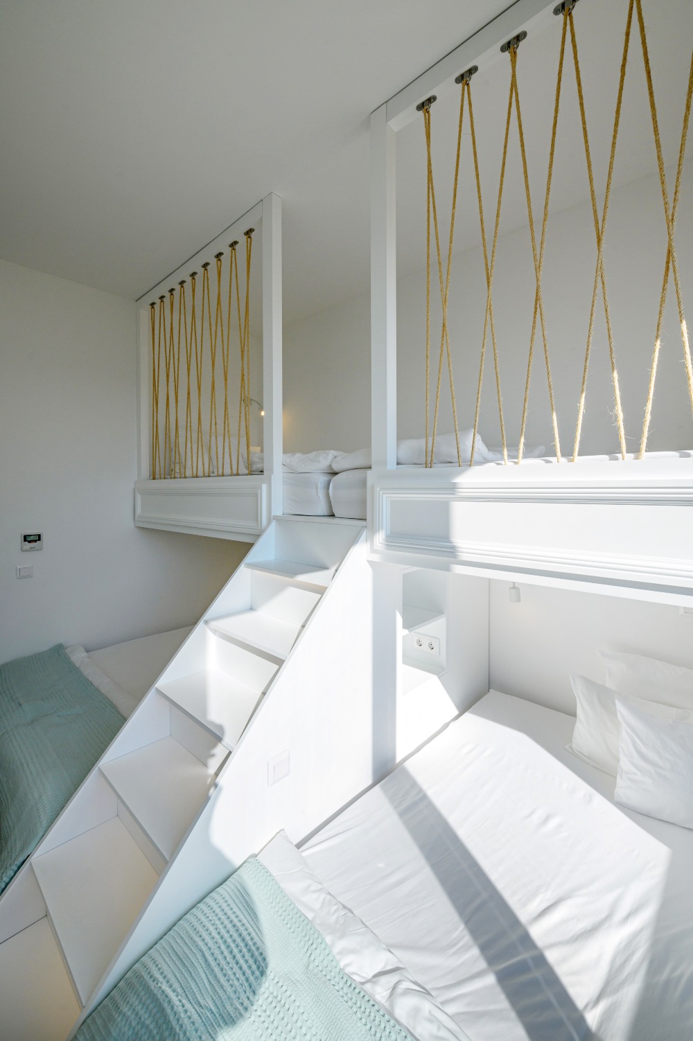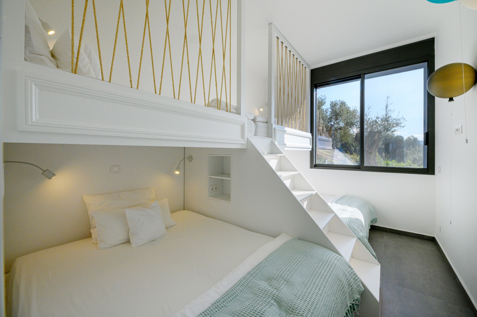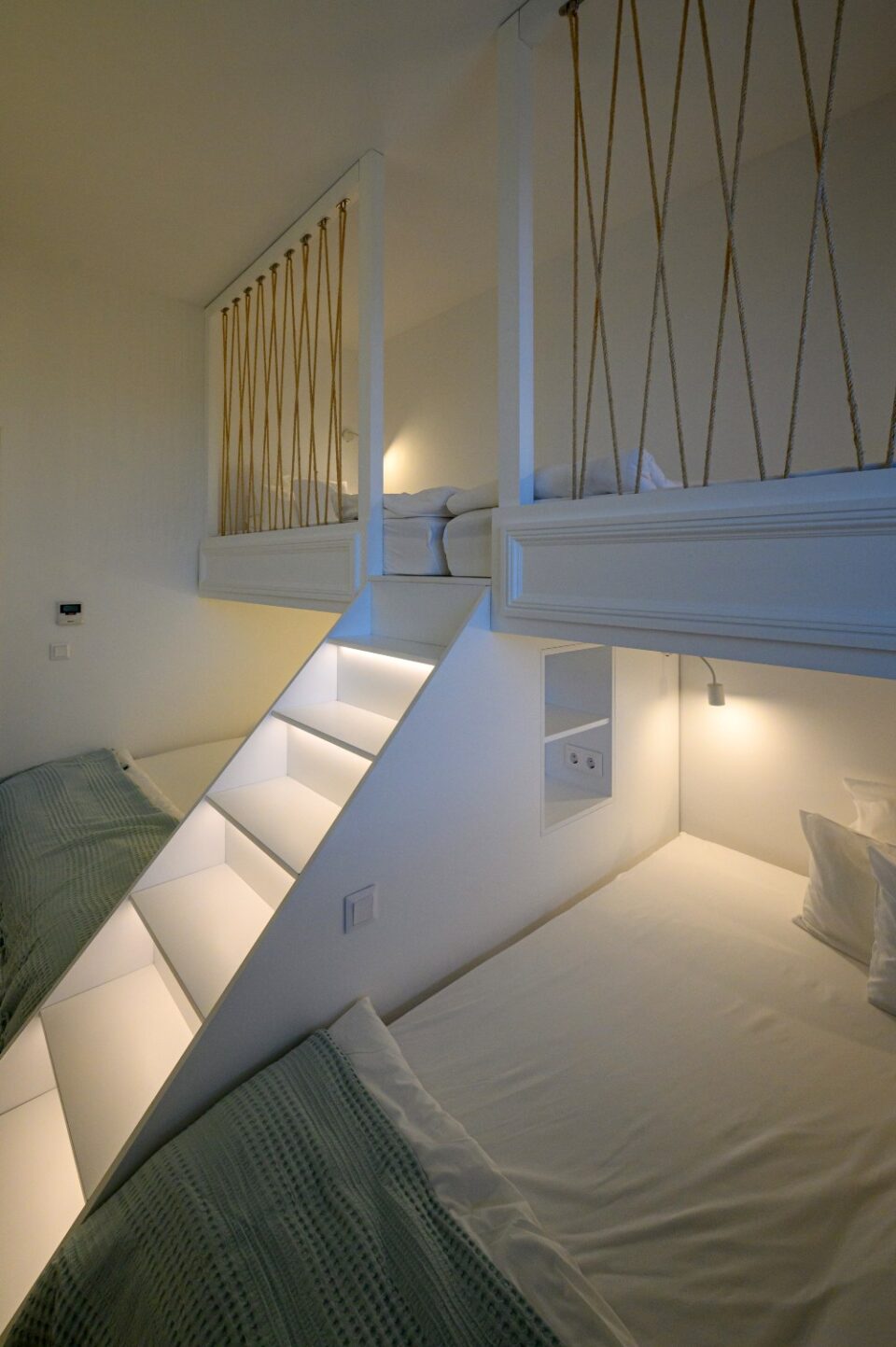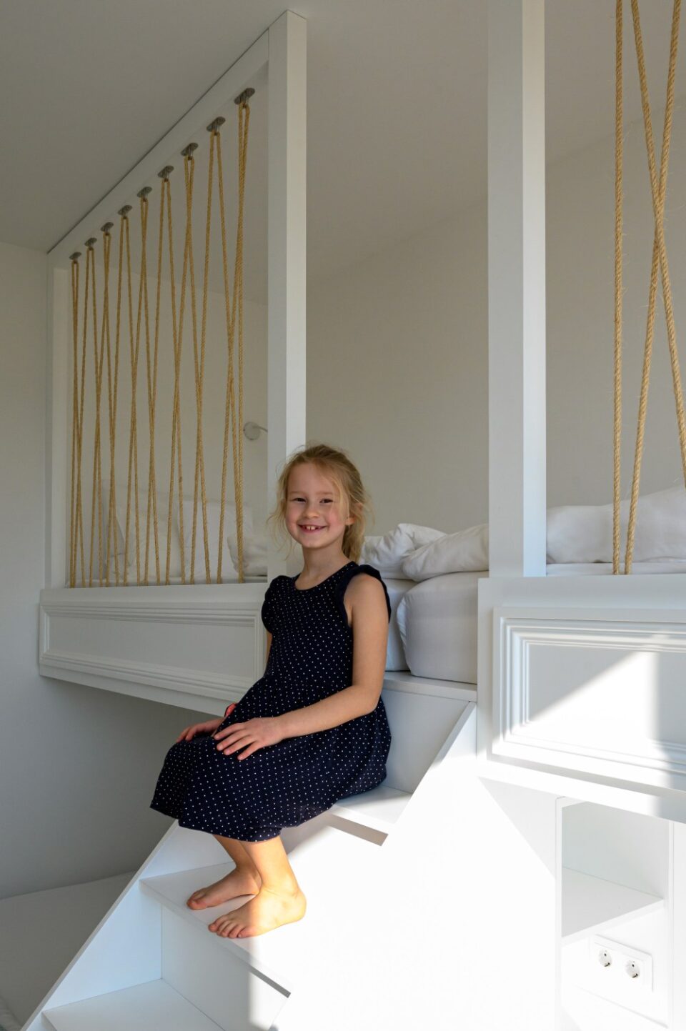 As for the established "sleep over" parties of our youngest clients, we made sure that the lower part of their beds opened telescopically, thus revealing two more beds for more space!!!