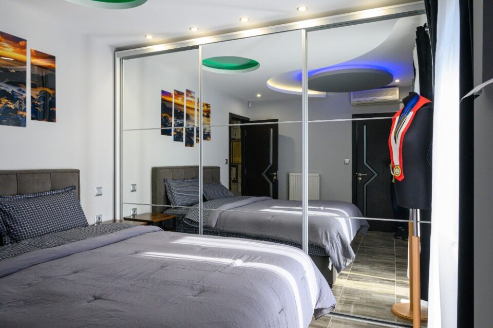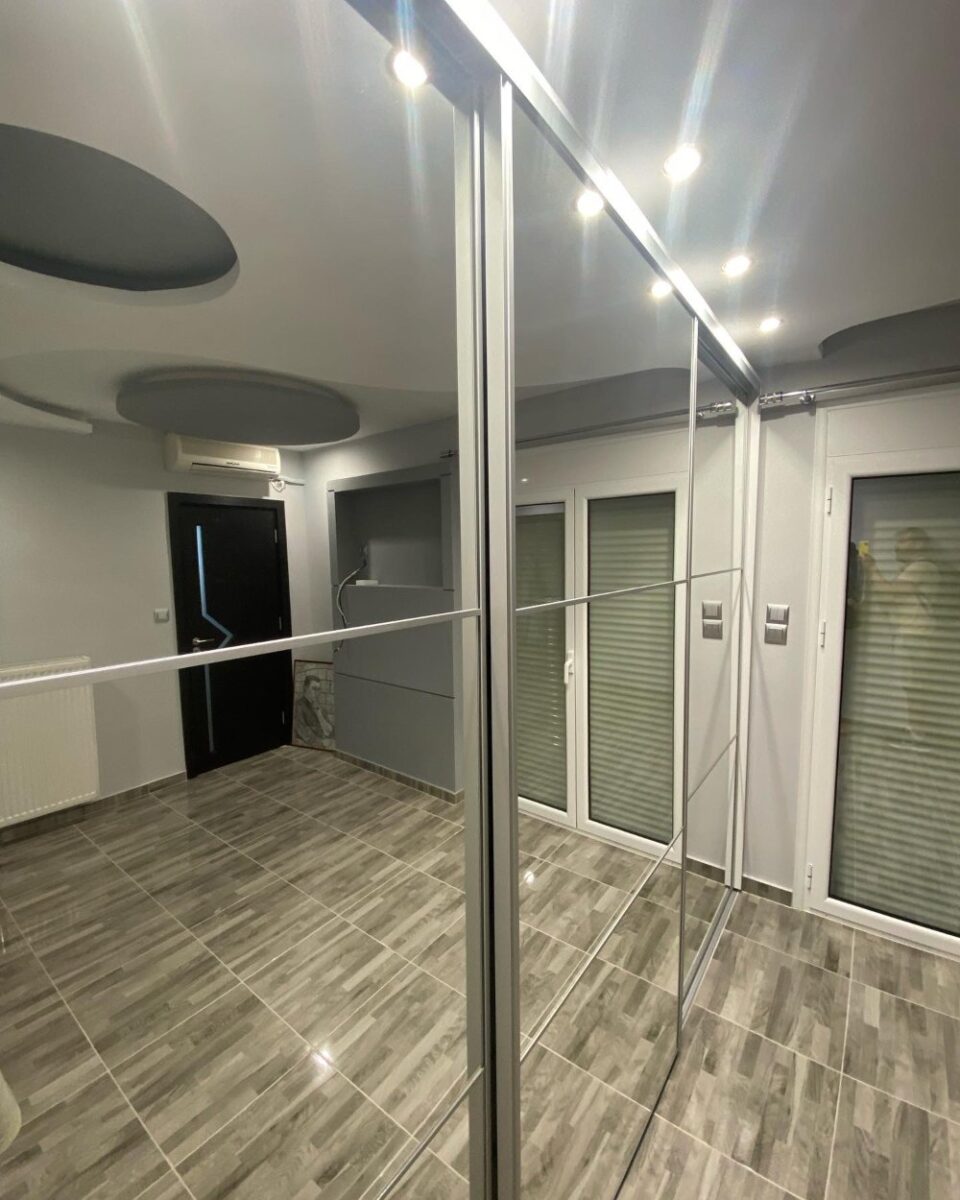 Ανοιγοκλείνει με συρόμενες πόρτες, με μηχανισμούς με φρένο, εντελώς απαραίτητοι σε αυτή την ντουλάπα, καθώς οι πόρτες είναι επενδενυμένες με καθρέφτες, και έτσι εξασφαλίζεται η μέγιστη ασφάλεια!