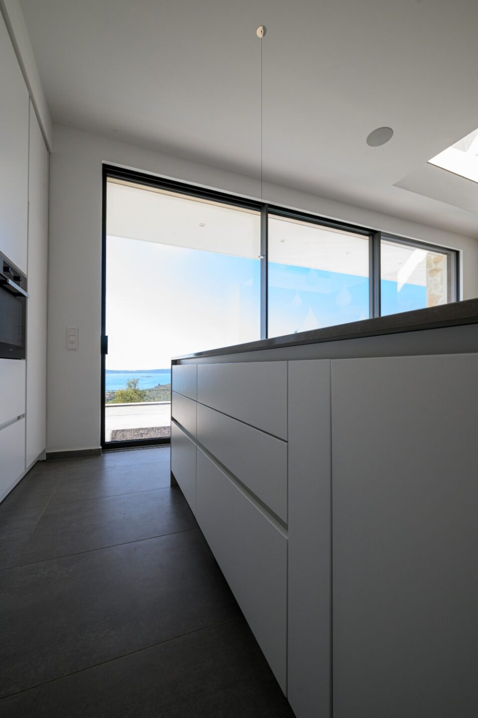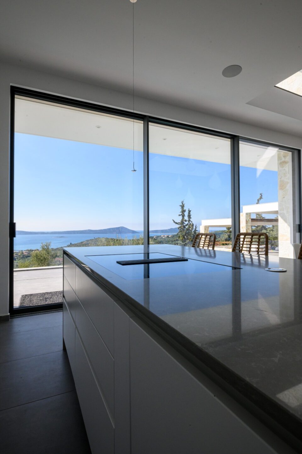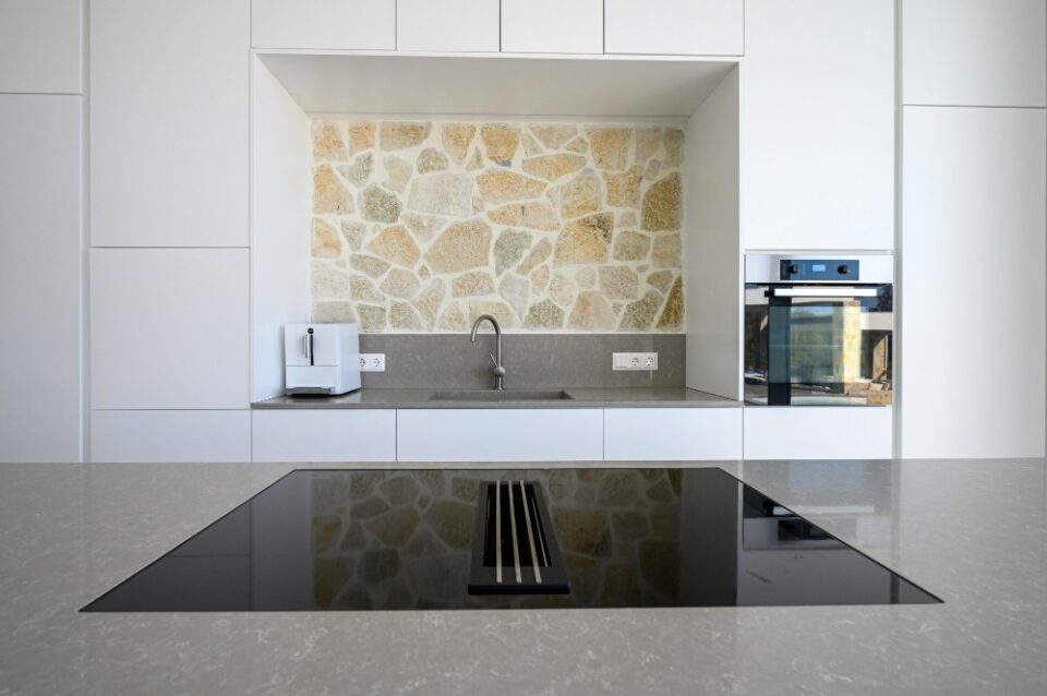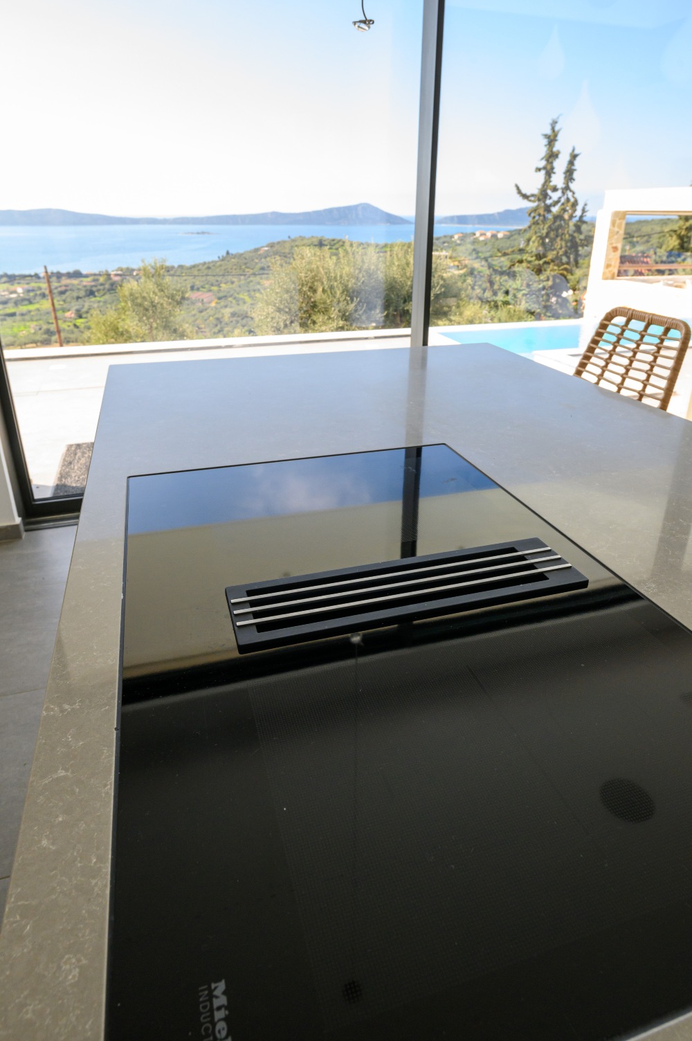 The cooking hob is also placed on the island, which consists of the eyes and the extractor, which is the latest technology with integrated absorption of cooking odors, with the air extraction system located under the island.