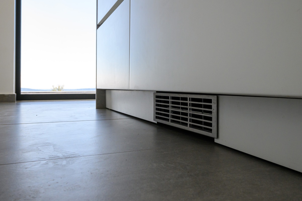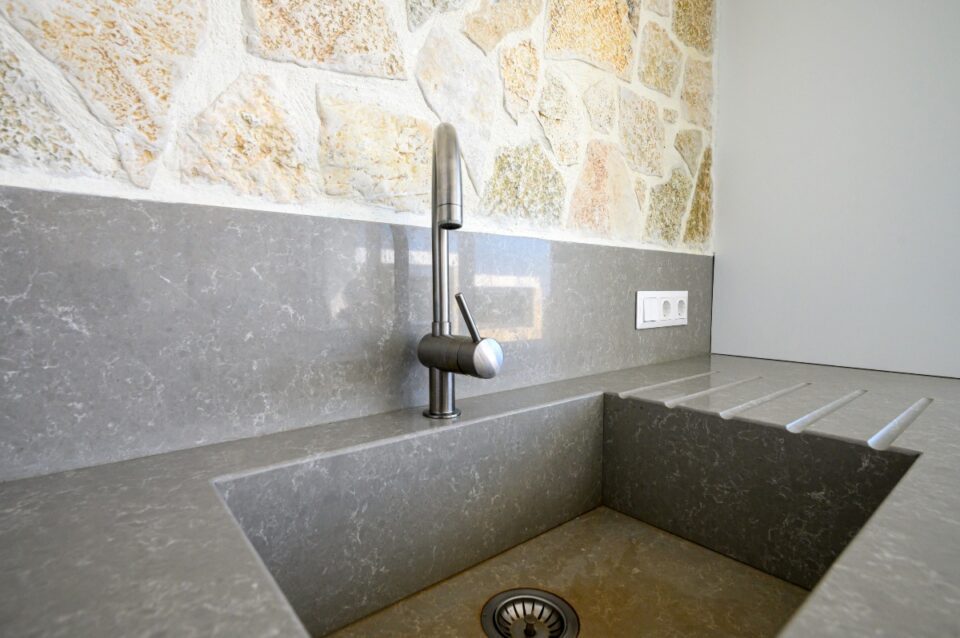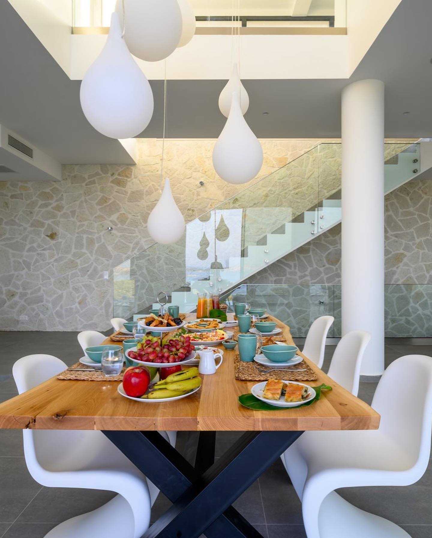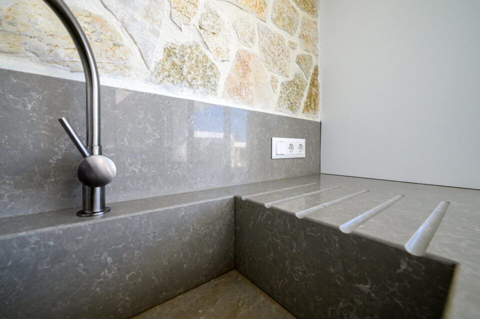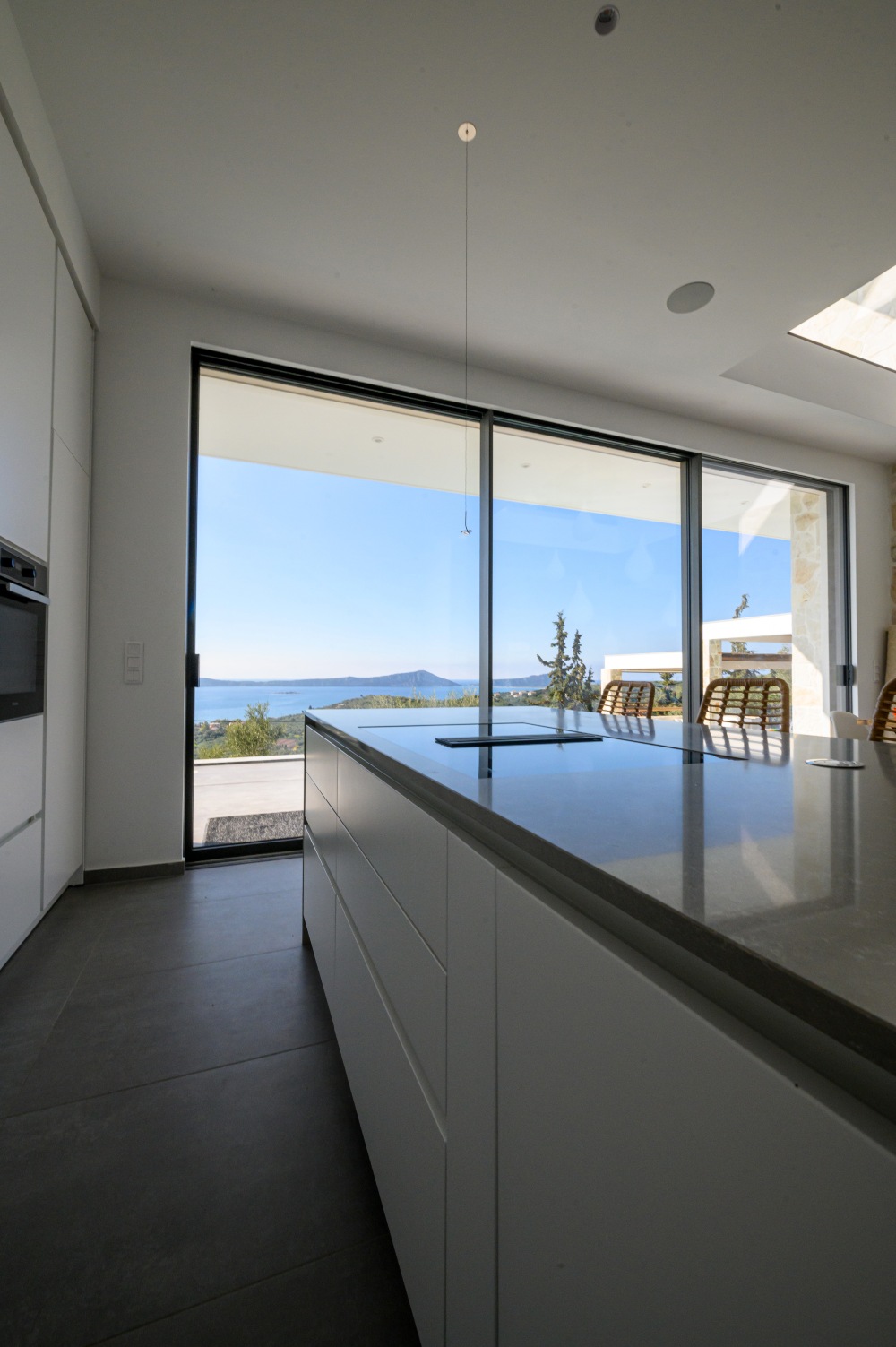 The cooking hob is also placed on the island, which consists of the eyes and the extractor, which is the latest technology with integrated absorption of cooking odors, with the air extraction system located under the island.