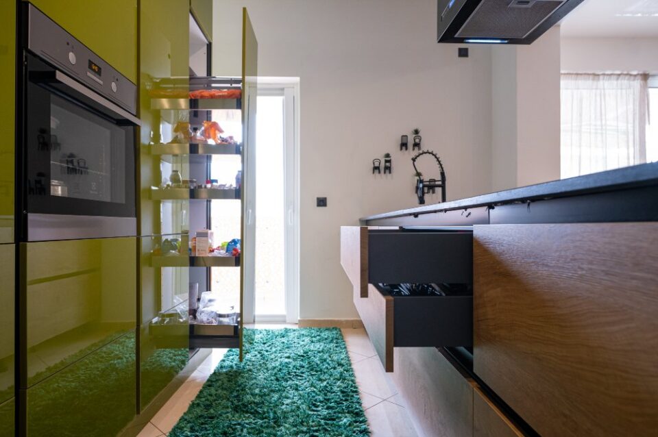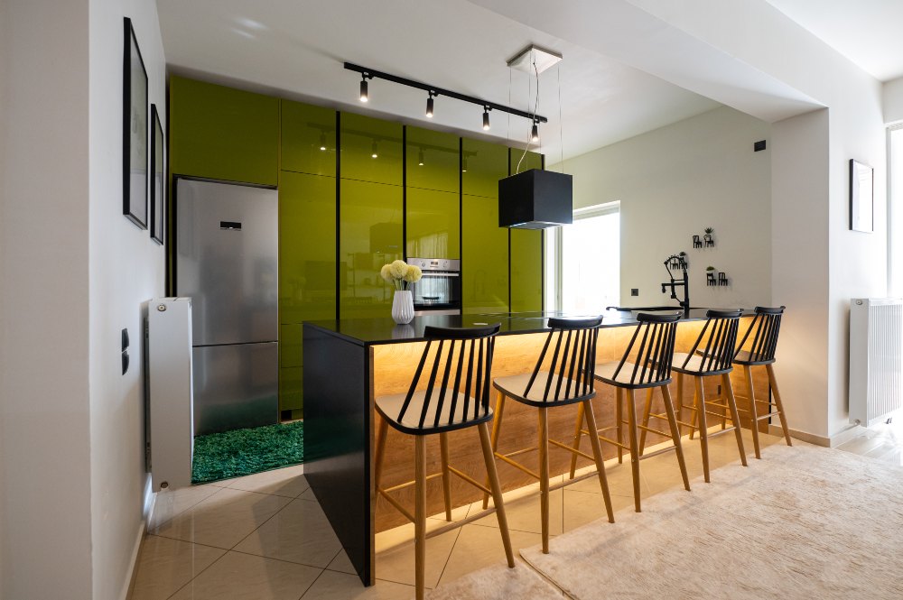 Ό,τι πιο μοντέρνο και εργονομικό θα το βρείτε σε αυτή την κουζίνα! Ζωηρά χρώματα, καινοτόμα υλικά και εξοικονόμηση αποθηκευτικού χώρου.