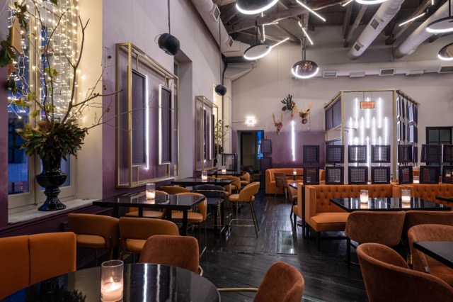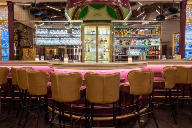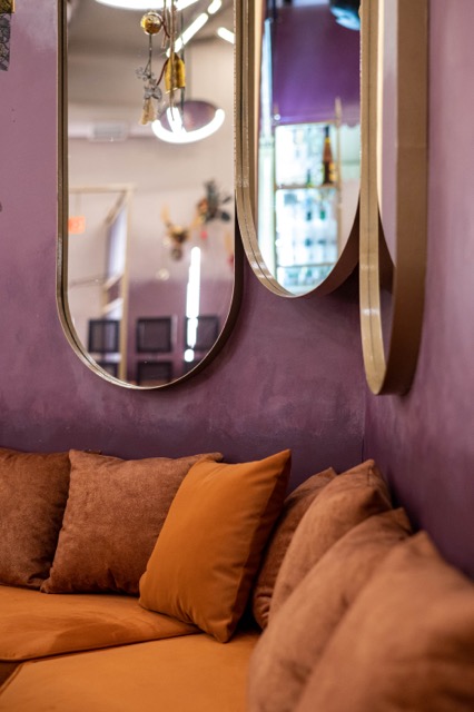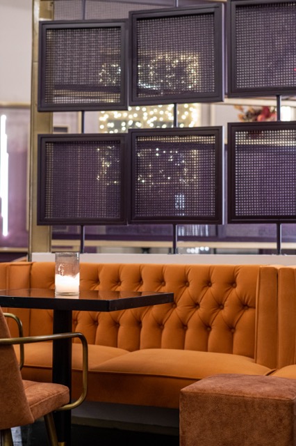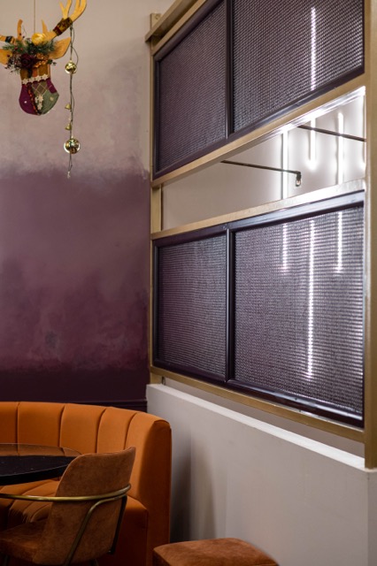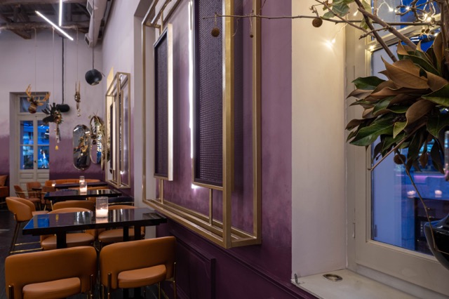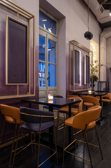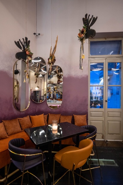 Ανεβαίνοντας την αρχοντική σκάλα, οδηγούμαστε στον πάνω όροφο του καταστήματος ο οποίος λειτουργεί κυρίως ως εστιατόριο και μπαρ. Εδώ κυριαρχεί το μεταλλικό στοιχείο και κατασκευαστικά αλλά και στο κομμάτι της διακόσμησης…