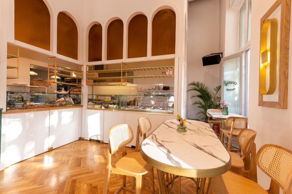 Αναπαλαιωμένα κουφώματα, με μία επιβλητική είσοδο, σε προδιαθέτουν για το τι θα δεις στο εσωτερικό του καταστήματος, αφού έχει διατηρηθεί παντού το αρχοντικό ύφος!