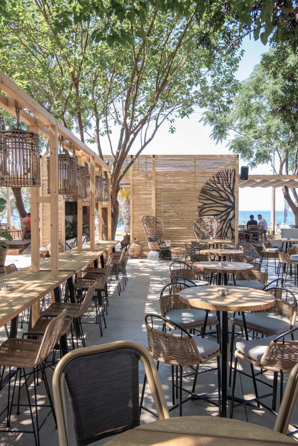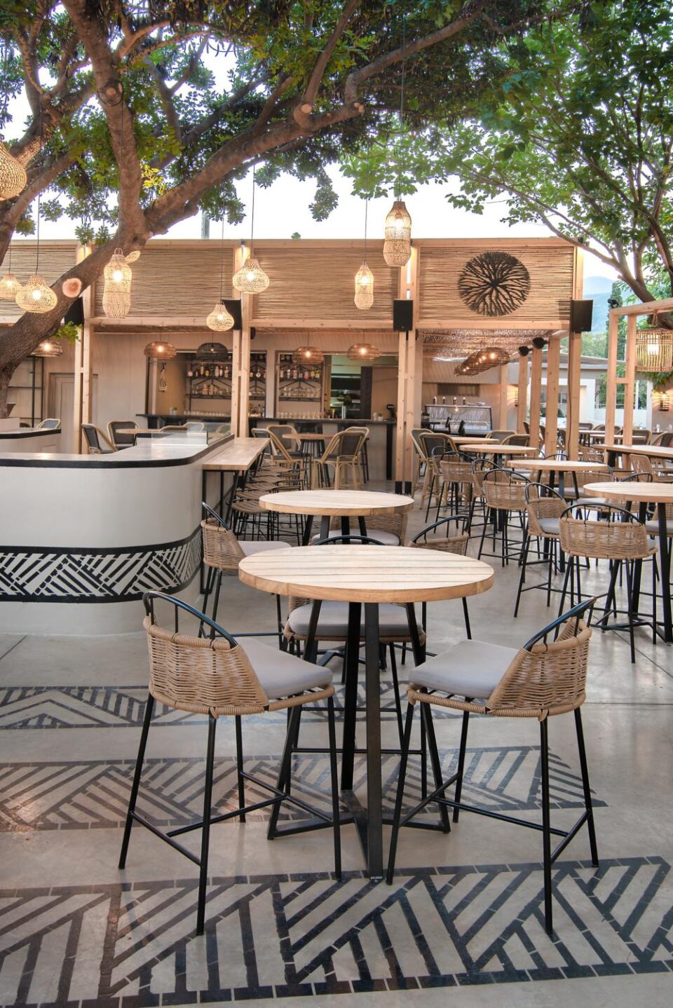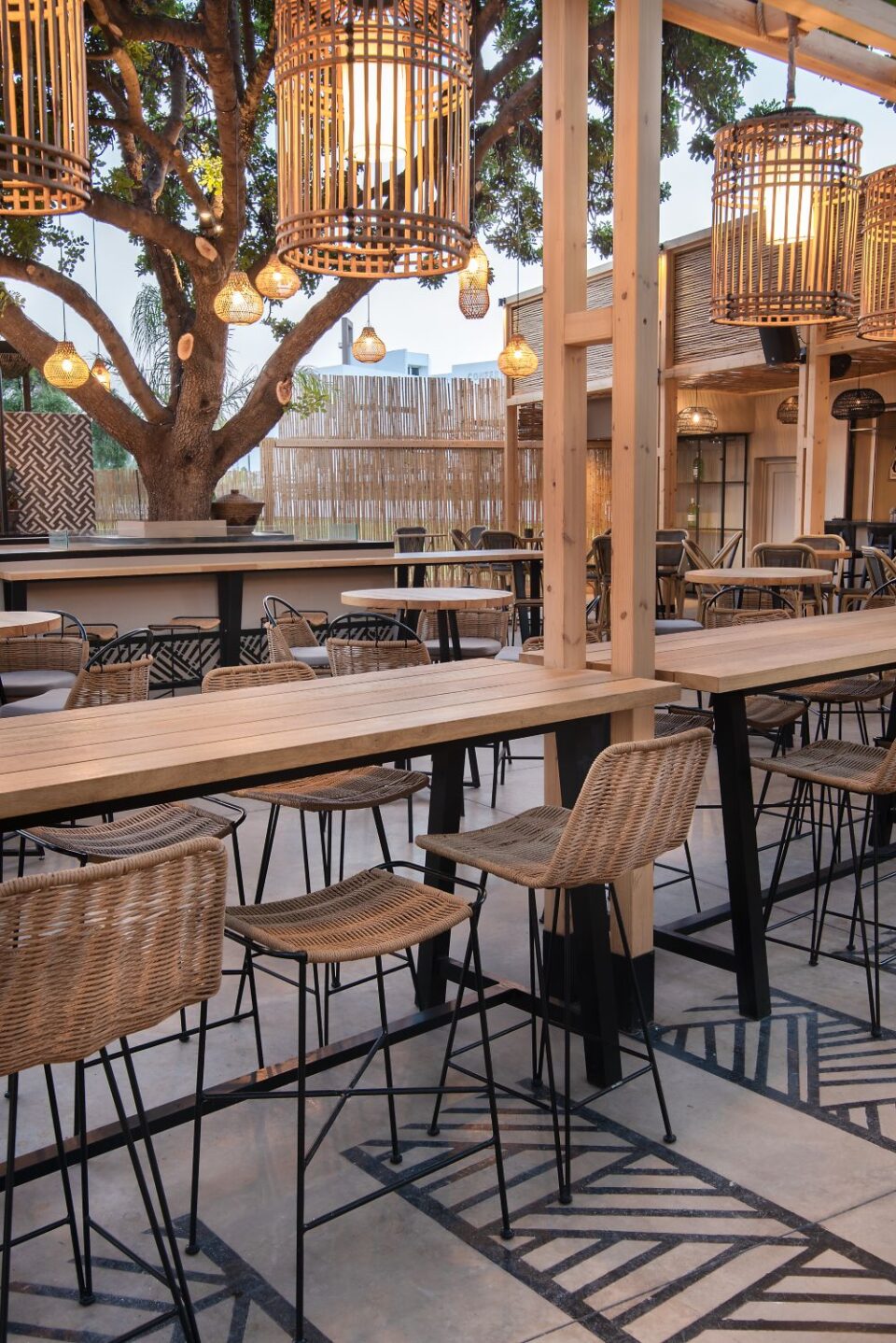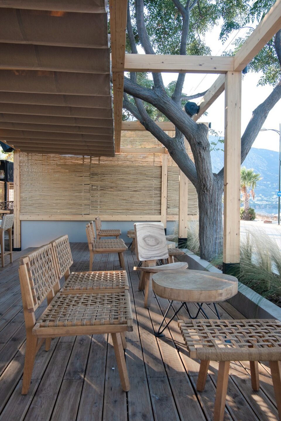 Από την είσοδο κιόλας αισθάνεσαι την καλοκαιρινή φιλόξενη ατμόσφαιρα σε έναν υπαίθριο χώρο που τα κύρια χαρακτηριστικά του είναι το ξύλο, τα φυσικά υλικά και οι γήινες αποχρώσεις.