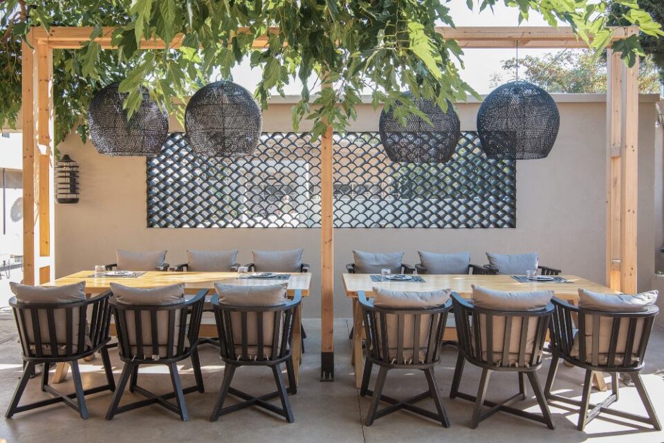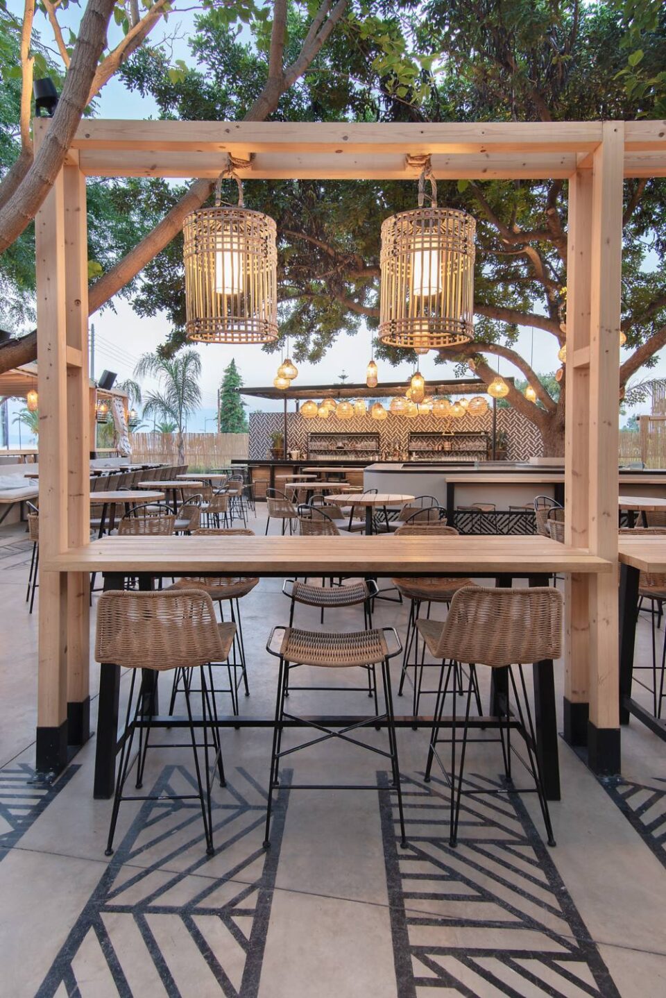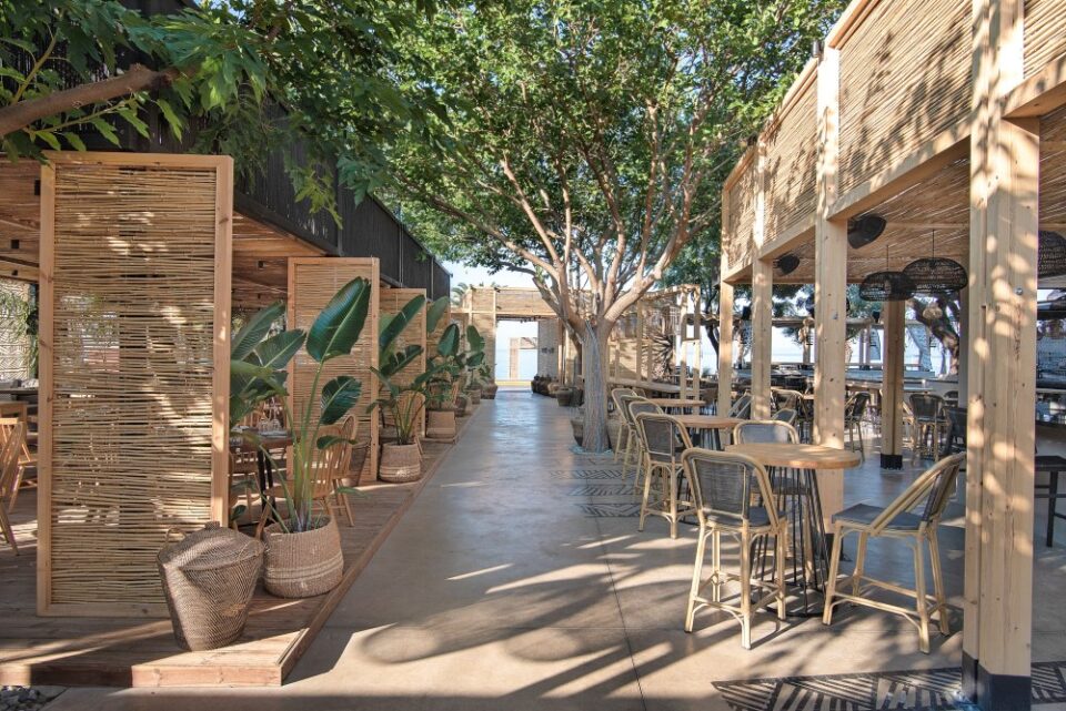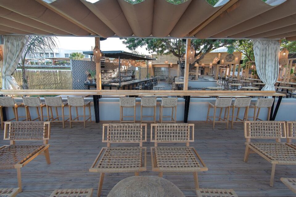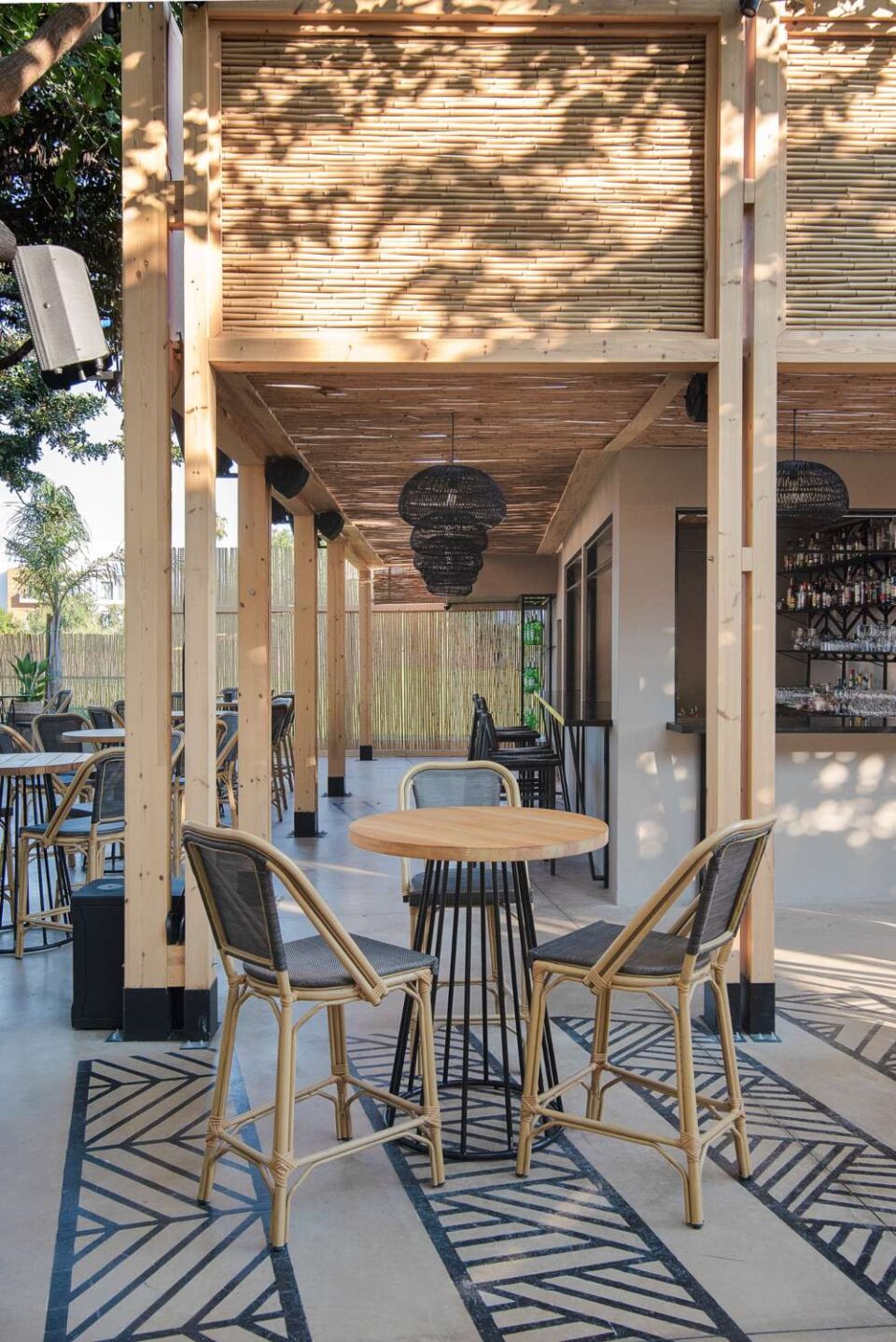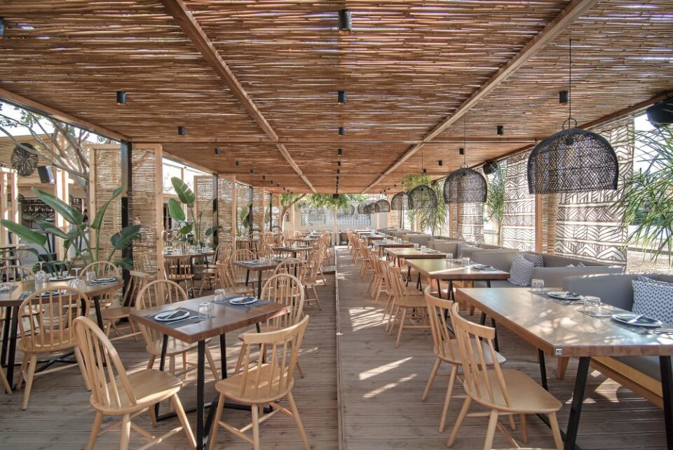 Από την είσοδο κιόλας αισθάνεσαι την καλοκαιρινή φιλόξενη ατμόσφαιρα σε έναν υπαίθριο χώρο που τα κύρια χαρακτηριστικά του είναι το ξύλο, τα φυσικά υλικά και οι γήινες αποχρώσεις.
