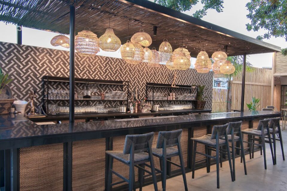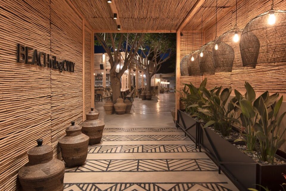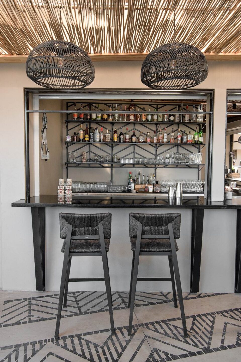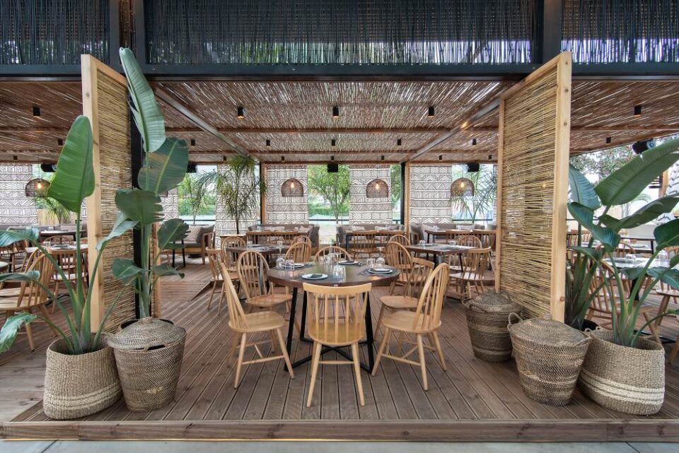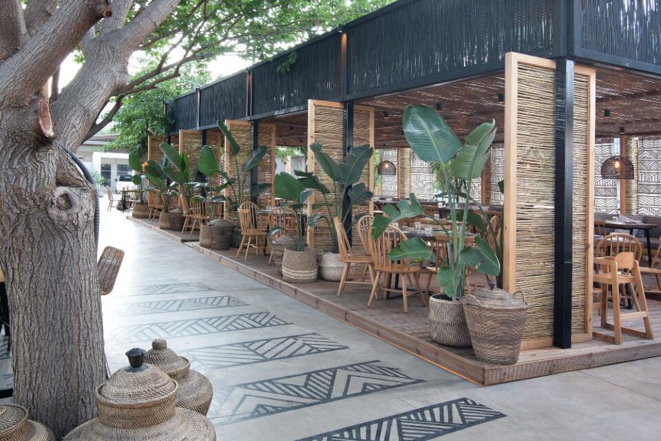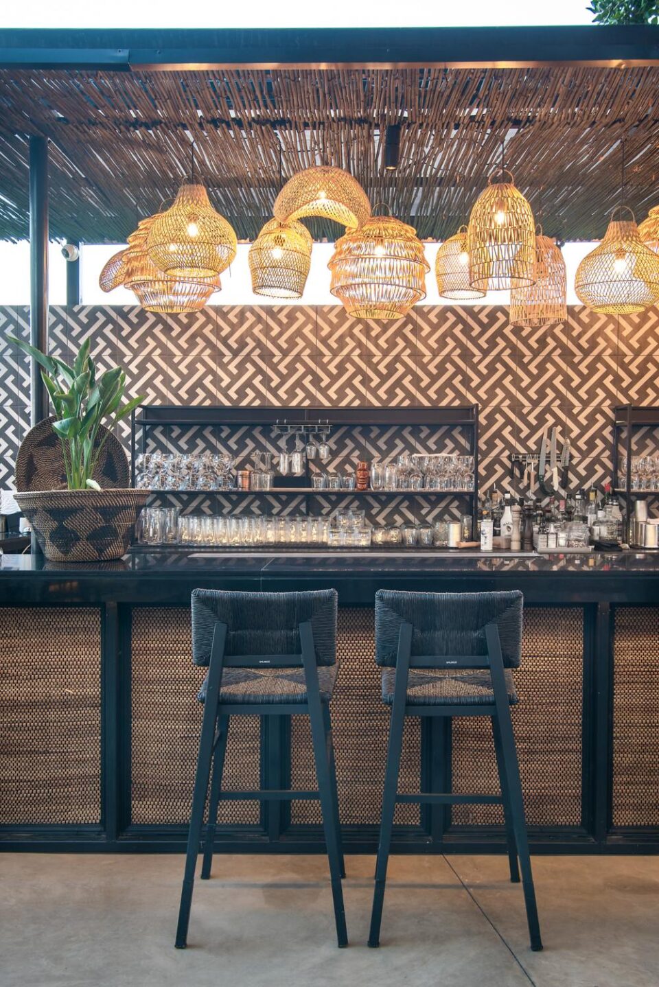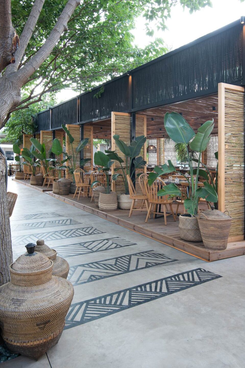 Ο χώρος χωρίζεται σε 3 επίπεδα – το bar, το εστιατόριο και το μπαλκόνι- αλληλένδετα μεταξύ τους καθώς οι καλαμωτές από baboo που επικρατούν στον χώρο έχουν δύο ρόλους. Αφενός, να ενώνει όλα τα επίπεδα, αφετέρου να κάνει σκίαση και να προστατεύει από τις καιρικές συνθήκες!
