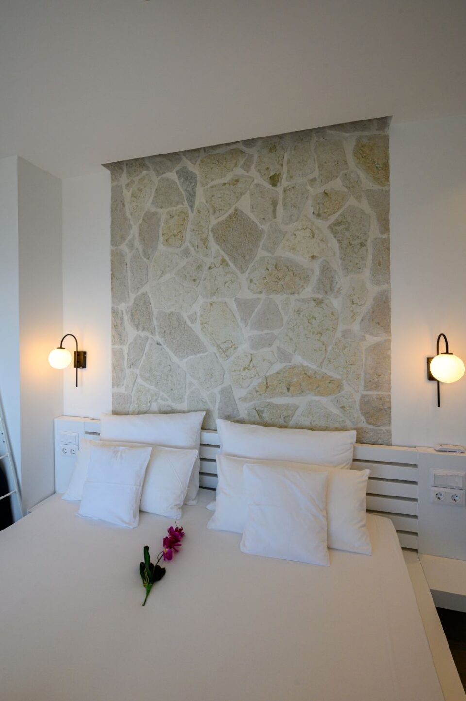 On the upper floor of the villa are the bedrooms, each with its own style.